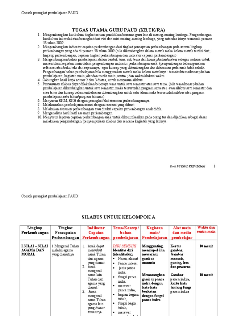 Silabus merupakan penjabaran standar kompetensi dan kompetensi dasar ke dalam materi pokok/pembelajaran, kegiatan pembelajaran, dan indikator pencapaian kompetensi untuk penilaian. Pada format silabus kurikulum 2013 paud yang terdapat pada halaman inipun kami sajikan secara komplit, dengan konsep pengembangan dan contoh model silabus paud kurikulum 2013, pendidikan anak usia dini untuk bagian formal dan. Silabus dan rpp k13 sma biologi rpp sma kelas x kurikulum 2013 matematika contoh silabus sd kls 2 silabus dan rpp akuntansi kelas x rpp penjas sma contoh rpp dan silabus kelas 3 sd revisi saverlasopa. Rencana pelaksanaan pembelajaran paud adalah merupakan kurikulum operasional yang dijadikan acuan bagi guru untuk. Kegiatan ini juga merespon para guru untuk lebih memperhatikan perkembangan anak.
